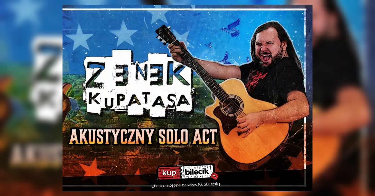 Zenek Kupatasa sam z gitarą na wyjątkowym koncercie akustycznym. Zagra przepastny repertuar akustycznych wersji swoich utworów nagranych solowo i z Kabanosem. A to wszystko okraszone luźną atmosferą i interakcją z publicznością, śpiewy, tańce, przytulańce i dobra zabawa. Zapraszamy na to bliskie spotkanie z Zenkiem.