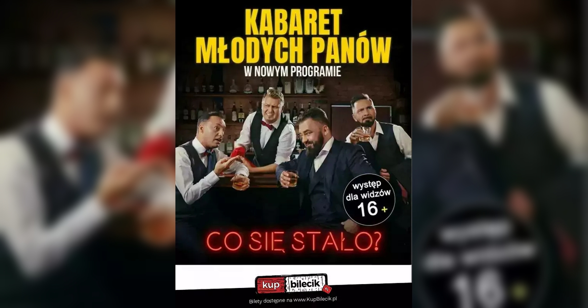 Najnowszy program Kabaretu Młodych Panów - "Co się stało?" jest sceniczną i oczywiście ironiczną odpowiedzią na pytanie, na które większość z nas odpowiada - nic. Czasami lekko rozwijamy odpowiedź, która automatycznie przechodzi w pytanie - nic, dlaczego pytasz?